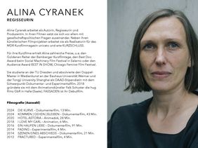 Alina Cyanrek will aufrütteln, Machtstrukturen aufzeigen, Veränderungen anstoßen: »Das Selbstverständnis, mit dem die Politik und Gesellschaft der Gewalt begegnet und kleinredet, muss sich grundlegend ändern. Ist das, was in der eigenen Wohnung passiert, wirklich Privatsache? Ich wünsche mir sehr, dass der Film draußen weitergeht: In Gedanken, Gesprächen, Empfehlungen. Über Tabuthemen zu sprechen ist immer der erste Schritt zu einer Veränderung. Wenn Menschen sensibler in ihrem Umfeld hinschauen, Fragen stellen, Unterstützung anbieten, hat sich die Arbeit gelohnt.«
