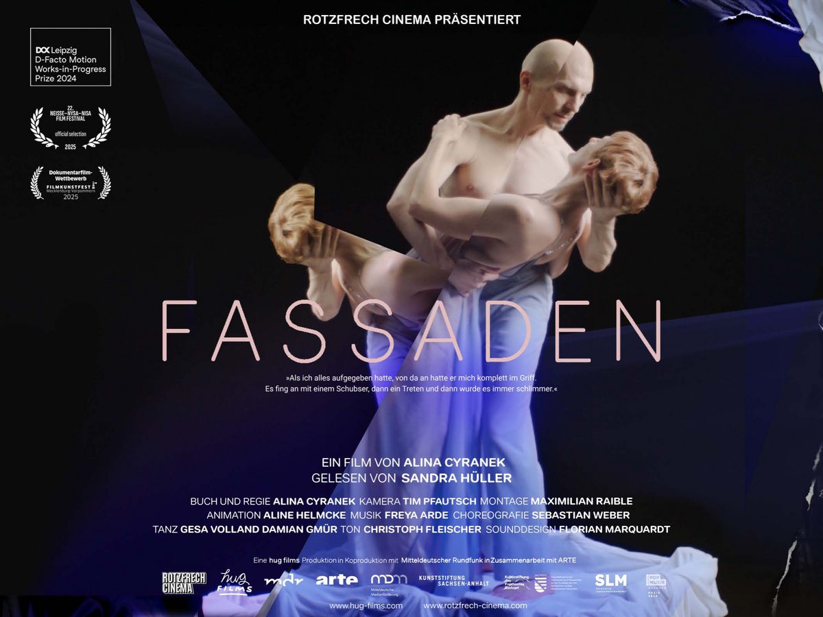 FASSADEN ist kein einfach konsumierbarer Film, er ist eine Herausforderung für die Zuschauenden. Häusliche Gewalt und die damit verbundenen Statistiken sind brutal, erschütternd, physisch. FASSADEN spiegelt all das in seiner Form wider, ist radikal und eigensinnig. Ausgezeichnet mit dem Work-in-Progress Prize bei der DOK Leipzig, mit dem Hauptpreis Dokumentarfilm beim Filmkunstfest MV in Schwerin und dem MADE IN GERMANY Preis beim exground Filmfest in Wiesbaden geht es nun in die Kinos! Kinostart ist der 12. Februar 2026.