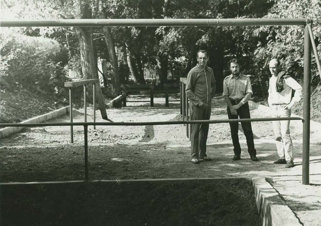Offen gibt Winfried Simmat Auskunft, wie sich die Rolle des Sports durch die gesellschaftlichen Veränderungen in seinem langen Berufsleben verändert hat. Die staatlich unterstützte Sportbegeisterung in der DDR ist genauso ein Thema, wie die Nähe, die die »Leibesertüchtigung« und die »Wehrertüchtigung« in diesem System teilweise hatten. In diesem Zusammenhang geht er kurz auch auf die »Kampfbahn« (vgl. Abb.) ein, die ein Teil der Sportanlagen an der Falkenburg war. Die größte Veränderung in seinem Berufsleben brachte die politische Wende der Jahre 1989/90 mit sich. Zu den bitteren Erfahrungen im Berufsleben Winfried Simmats gehört der »Rückbau« des Hochschulsportzentrums, den er nach der Wende in verantwortlicher Position moderieren musste. Die Zahl der Sportlehrer musste von bis dahin zwölf auf nur noch drei Personen reduziert werden.