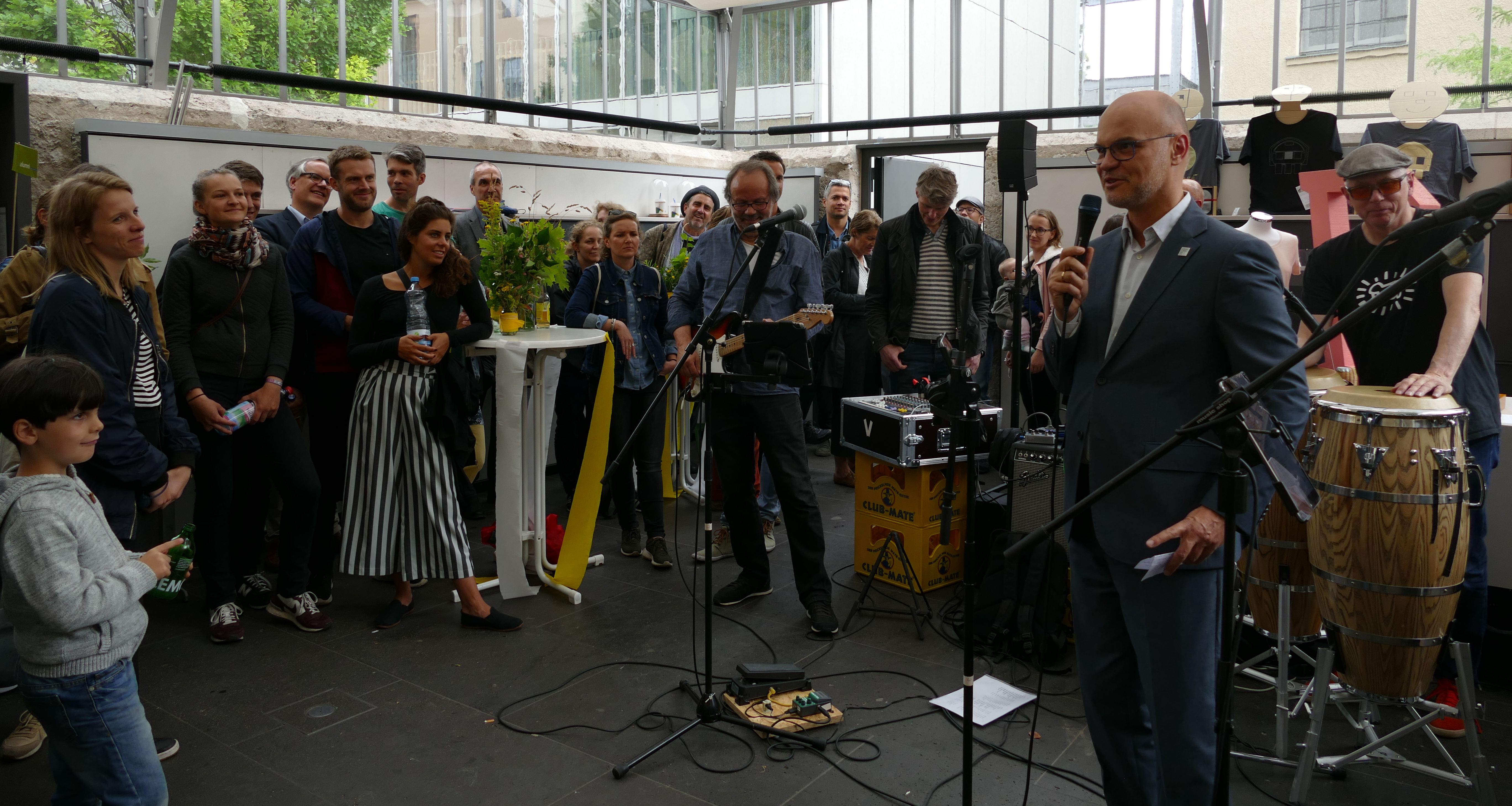 Kanzler bedankt sich für Engagement | Mehr als 120 Alumni fanden sich zum Alumniempfang am Bauhaus.Atelier ein – trotz starken Regens, der die summaerytage in diesem Jahr mit Beständigkeit begleitete. Der Stimmung jedoch und der Intensität der Besuche tat dies keinen Abbruch. Der Kanzler der Bauhaus-Universität Weimar, Dr. Horst Henrici, hieß alle Alumni herzlich willkommen und bedankte sich insbesondere für deren Engagement im Mentorenprogramm für Studierende und im Rahmen des Deutschlandstipendiums. Ohne die zahlreichen intensiven Verbindungen gäbe es diese Erfolge nicht. »Sie als Alumni sind das Netzwerk unserer Universität in die Gesellschaft.«, so Dr. Henrici.