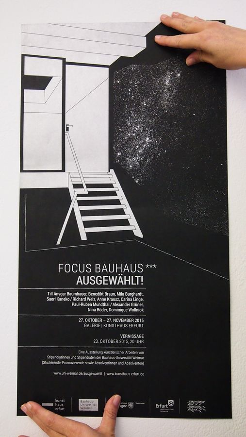 Erstmalig nun mündet die wechselseitige Zusammenarbeit in einer direkten Kooperation zwischen der Bauhaus-Universität Weimar und dem Kunsthaus Erfurt. »FOCUS BAUHAUS*** AUSGEWÄHLT!« lautet der Titel der nächsten Ausstellung im Kunsthaus Erfurt. Sie vereint aktuelle Arbeiten von elf Studierenden und Alumni der Bauhaus-Universität Weimar.