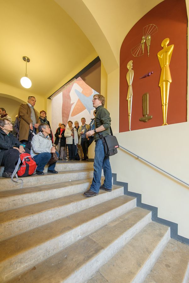 Als Hochschule für Gestaltung revolutionierte das Bauhaus das gestalterische sowie künstlerische Denken und Schaffen weltweit und wirkt bis in die Gegenwart fort. 1996 wurden die »Bauhausstätten in Weimar und Dessau« deshalb in die Weltkulturerbeliste der UNESCO aufgenommen. Gegründet wurde das Bauhaus 1919 in den Räumen der damaligen Großherzoglichen Kunsthochschule in Weimar, die heute unter anderem die Fakultät Architektur und Urbanistik sowie das Rektorat der Bauhaus-Universität Weimar beherbergen. Die Führung beginnt in der ehemalige Kunsthochschule, dem Gründungsort des Staatlichen Bauhauses und heutigem Hauptgebäude der Universität. Sie geht weiter durch die ehemalige Großherzoglich-Sächsische Kunstgewerbeschule und endet im Haus Am Horn, das der Freundeskreis der Universität betreut. Besichtigt werden unter anderem das von Walter Gropius entworfene, rekonstruierte Direktorenzimmer und Wandgestaltungen von Oskar Schlemmer im Van-de-Velde-Bau, die sonst nicht zugänglich sind.