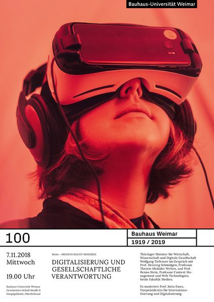 Gesprächspartner zum Thema »Digitalisierung und gesellschaftliche Verantwortung« war der Thüringer Minister für Wirtschaft, Wissenschaft und Digitale Gesellschaft Wolfgang Tiefensee. Tiefensee war im Gespräch mit Prof. Henning Schmidgen, Professur Theorie Medialer Welten, und Prof. Benno Stein, Professur Content Management und Web Technologien, beide Fakultät Medien. Es moderierte Prof. Jutta Emes, Vizepräsidentin für Internationalisierung und Digitalisierung.