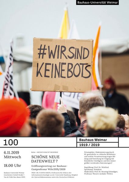 Für das Wintersemester des Bauhaus-Jubiläumsjahres konnte die Bauhaus-Universität Weimar die renommierte Hamburger Wissenschaftlerin und Technikphilosophin Prof. Dr. Judith Simon als Bauhaus-Gastprofessorin gewinnen. Sie leitet an der Universität Hamburg die Professur Ethik in der Informationstechnologie und ist Mitglied des Deutschen Ethikrates sowie der Datenethikkommission der Bundesregierung.