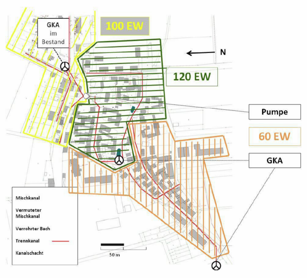 Dieses studentische Projekt beschäftigt sich konkret mit den Wasserinfrastruktursystemen einer thüringischen Gemeinde und entwickelt Konzepte für ihre Ausgestaltung in der Zukunft. Es besteht Handlungsdruck, da die vornehmlich eingesetzten Absetzgruben (mechanische Abwasserreinigung) nicht mehr dem vorgeschriebenen Stand der Technik entsprechen und ersetzt werden müssen.
