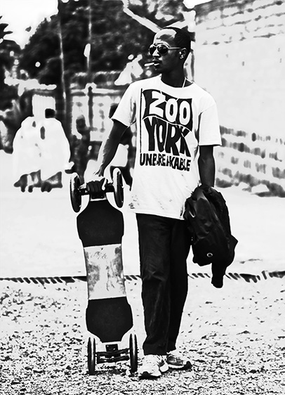 Thema der Abschlussarbeit ist ein individuelles Transportmittel für eine breite Bevölkerungsschicht der äthiopischen Hauptstadt Addis Abeba. Das Ergebnis ist ein Skateboard, das durch große Räder, einen tiefen Stand und eine dafür entwickelte Achsmechanik besonders leicht zu beherrschen ist. Darüber hinaus ist es auf einfachste Produktionsmittel und hohes Trendpotential ausgelegt.
