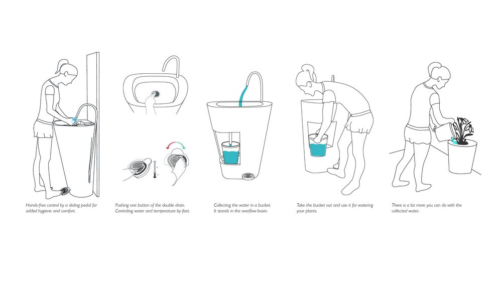 PLURA ist eine neue Art von Waschbecken. Die Wascheinheit wird durch ein Fußpedal angesteuert und befähigt den Nutzer in den Wasserkreislauf einzugreifen. PLURA bietet die Möglichkeit, noch nutzbares Grauwasser aufzufangen und dort weiterzuverwenden, wo keine Trinkwasserqualität benötigt wird. Dieses, bisher ungenutzte Wasser, kann zum Bewässern von Garten und Blumen, zum Putzen und zu vielem mehr verwendet werden.