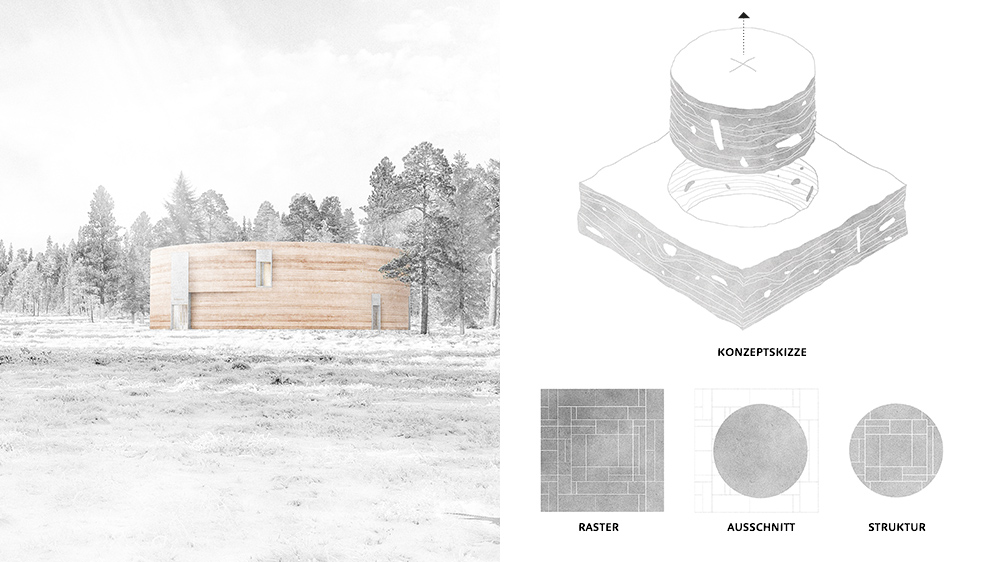 Dem Entwurf liegt ein gedanklicher Ausschnitt der Region zugrunde. Ein Ausschnitt, der wie eine Kernbohrung ausgeführt wird, die Substanz des Ortes extrahiert und es zum Vorschein bringt.