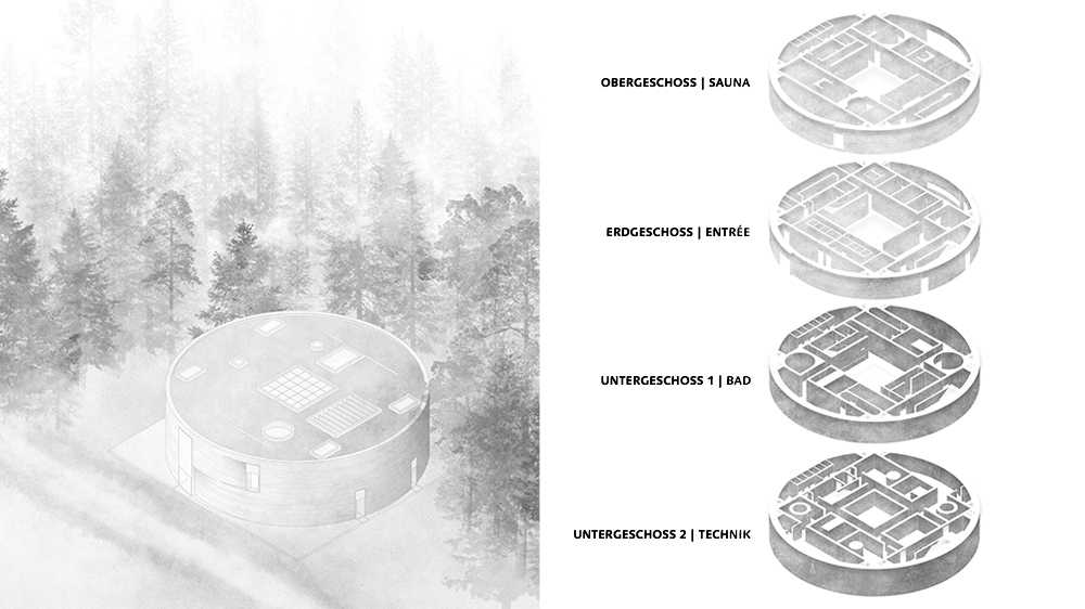 Der Lärm und die Hektik der Stadt bringt immer mehr Menschen dazu, Ruhe und Geborgenheit in der Natur zu suchen. In direkter Nachbarschaft zur Ostsee bietet ein Kiefernwald den perfekten Schutz durch die Bäume, er stiftet eine Oase. Die Akkumulation der verschiedenen Faktoren macht es zu einem optimalen Standort für ein Badehaus, das an eine alte, archaische Badekultur anknüpft und ein Gegenmodell zum Eventtourismus der Ostseeküste darstellt.
