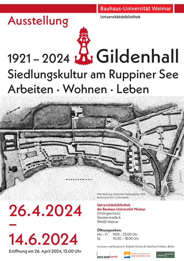 Die Freiland- und Kunsthandwerker-Siedlung Gildenhall wurde 1921 am Ostufer des Ruppiner Sees auf Initiative des Berliner Bauunternehmers Georg Heyer mit Unterstützung von Otto Bartning, Vorstandsmitglied des Deutschen Werkbundes, gegründet. Die Ausstellung zeigt die Siedlungsgeschichte von Gildenhall bis ca. 1930 und verweist auf lebensreformerische Ansätze des Arbeitsrats für Kunst, des Deutschen Werkbundes und des frühen Bauhauses.