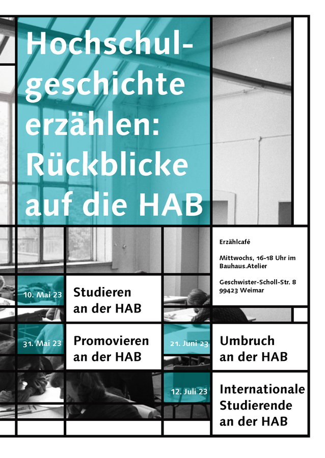 Eine Veranstaltungsreihe an der Bauhaus-Universität Weimar in Kooperation mit der Oral-History-Forschungsstelle der Universität Erfurt beschäftigt sich im Sommersemester 2023 mit der Geschichte der Hochschule für Architektur und Bauwesen (HAB). Das dritte Erzählcafé findet am Mittwoch, 12. Juli 2023, um 16 Uhr statt und veranschaulicht internationale Beziehungen an der HAB. Für das Erzählcafé am 12. Juli 2023 werden noch ehemalige internationale Studierende der Hochschule gesucht!