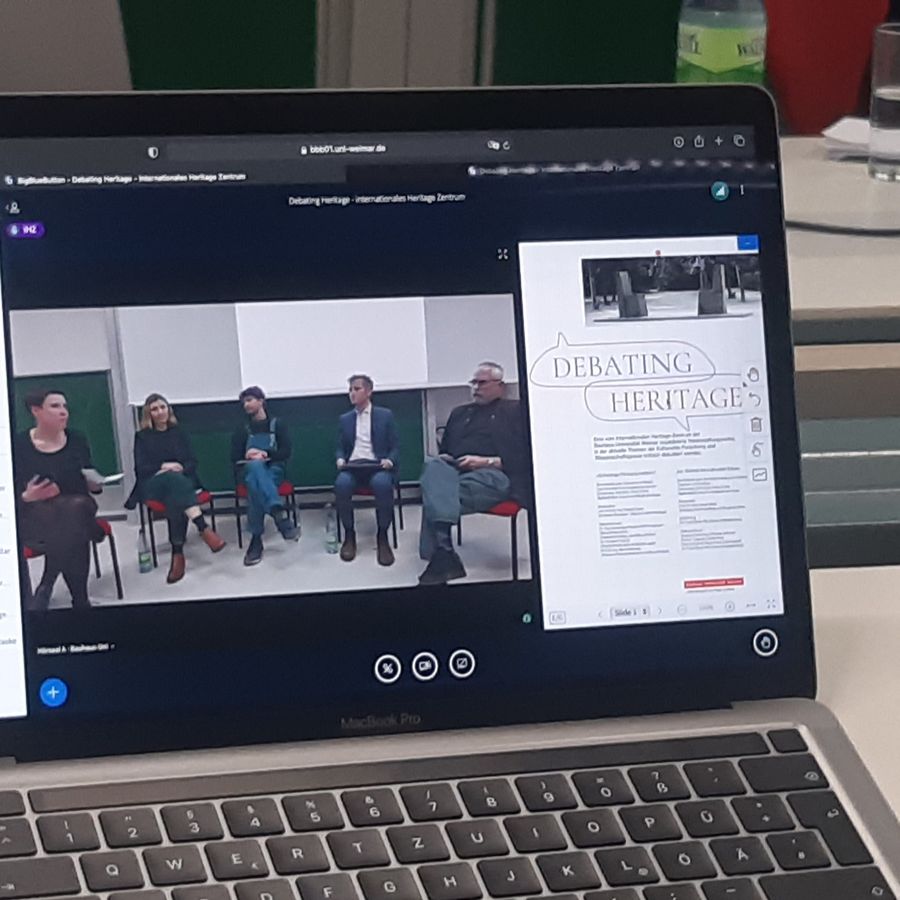 Mit einer neuen hybriden Debattenreihe startete das Internationale Heritage-Zentrum am Donnerstag, den 13. Januar in das Jahr 2022. Anwesend waren aufgrund der aktuellen Lage nur die Diskutant:innen - Jun.-Prof. Dr. Daniela Zupan, Prof. Dr. Bernd Nentwig, Dr. Christian Kästner, und Marcell Hajdu von der Bauhaus-Universität Weimar sowie Dr. Oxana Gourinovitch von der RWTH Aachen - und einige Mitglieder des Internationalen Heritage-Zentrums. Weitere Teilnehmende folgten der belebten Diskussion online.