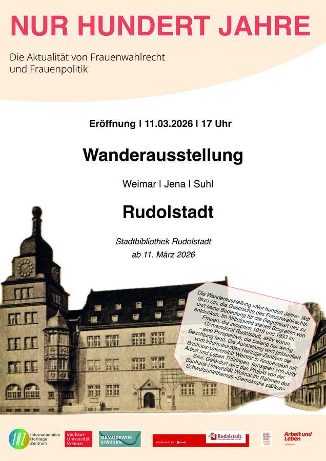 Im Mittelpunkt stehen Biografien von Frauen, die zwischen 1919 und 1933 im Gemeinderat Rudolstadt aktiv waren – eine Perspektive, die bislang nur wenig Beachtung fand.