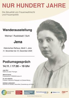 Vom 11. November bis 10. Dezember ist die Ausstellung “Nur hundert Jahre - Die Aktualität von Frauenwahlrecht und Frauenpolitik” in Jena zu sehen.