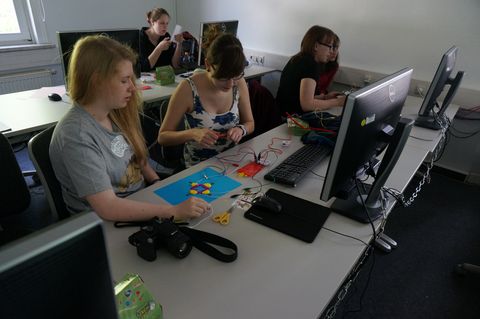 Am 17. Oktober 2014, dem letzten Tag der CampusThüringenTour, besuchten 17 Schülerinnen der Klasse 10 bis 13 die Bauhaus-Universität Weimar. Von Ilmenau aus startend, lernten sie in einer Woche täglich einen anderen Thüringer Hochschulort kennen und erhielten Einblicke in zukunftsorientierte technische Studiengänge und innovative Forschung. An der Bauhaus-Universität Weimar konnten sie in die Medieninformatik schnuppern und in einem Workshop mit einem MakeyMakey-Kit eigene Interface basteln. Außerdem stand eine Einführung in das Studienangebot und ein Mittagessen in der Mensa am Park auf ihrem Programm. Von den Schülerinnen bekam die Bauhaus-Universität Weimar das Feedback, die »modernste« von allen Hochschulen zu sein.