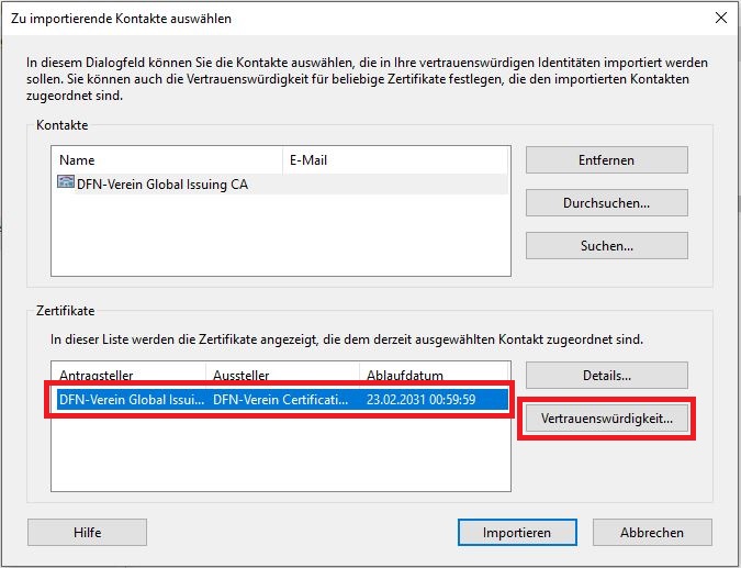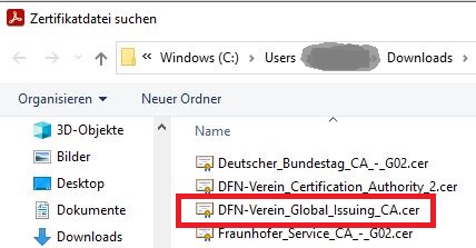 Einpflegen des Intermediate-Zertifikates der DFN-PKI
