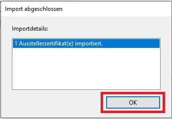 Wählen Sie links die Kategorie Vertrauenswürdige Zertifikate aus und klicken Sie dann oben in der Leiste auf das Symbol zum Importieren (blauer Pfeil nach links):