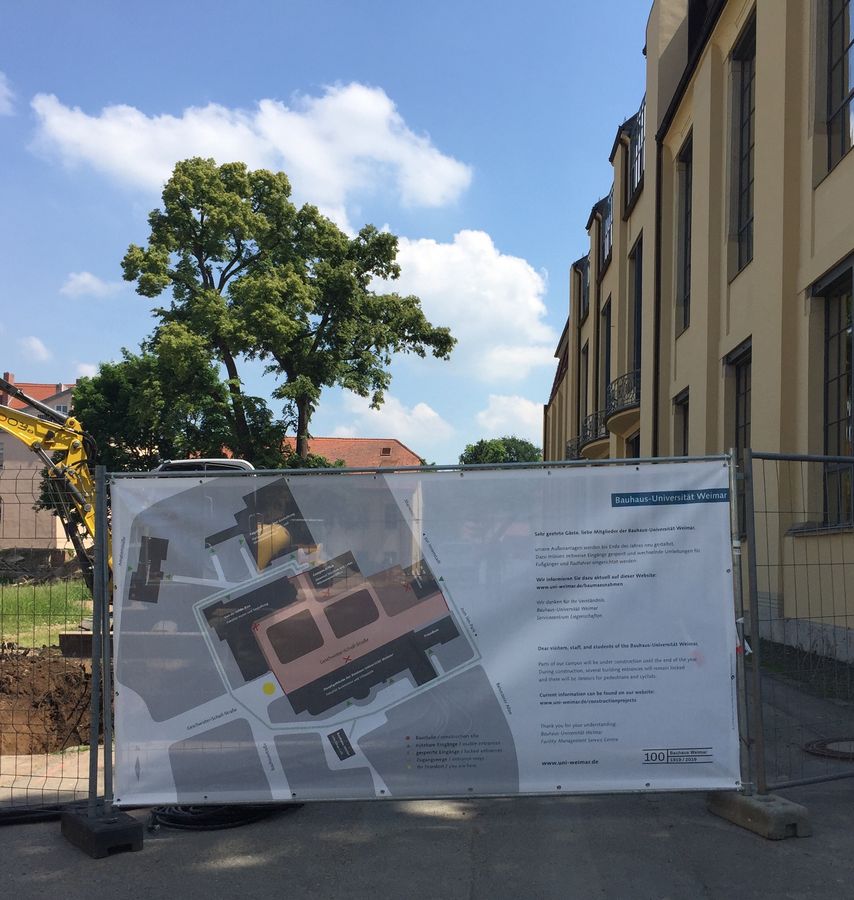 Sie wird, durch die Sperrung des Baustellenareals bedingt, eine gute Orientierung geben, um die entsprechenden Gebäude zu erreichen.