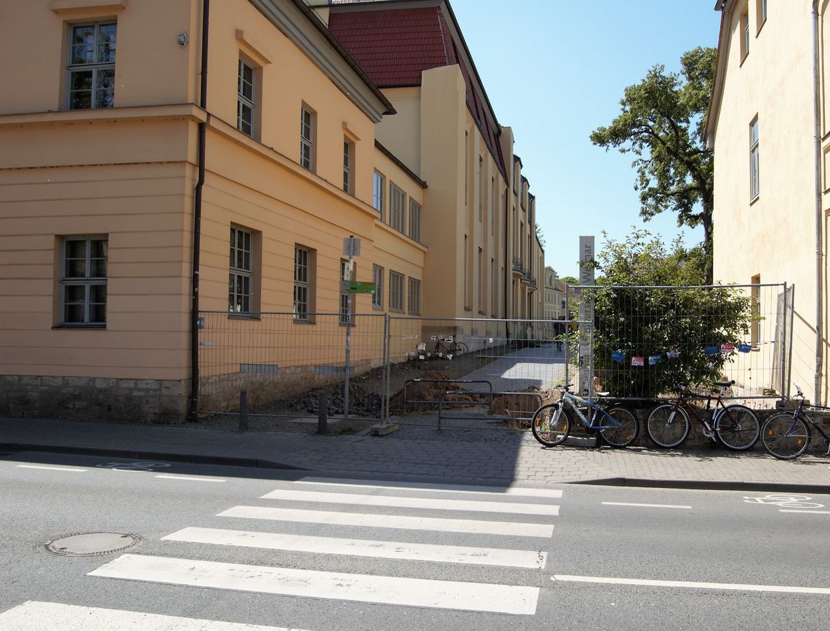 Aufgrund von Bauarbeiten an den Außenanlagen der Van-de-Velde-Bauten ist der Bereich derzeit leider nur eingeschränkt zugänglich.
