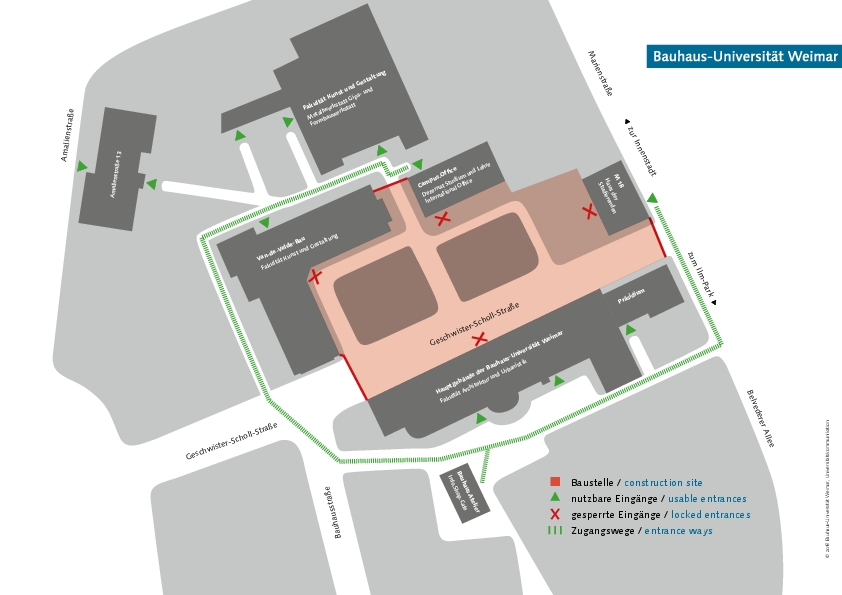 Einen Überblick über die gesperrten Zugänge sowie mögliche Ausweichmöglichkeiten gibt Ihnen der angehängte Baustellenplan.