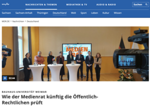 An der Bauhaus-Universität Weimar ist der neue Medienrat angesiedelt, der im Rahmen der Rundfunkreform den gesetzlichen Auftrag von ARD, ZDF und Deutschlandradio kontrollieren soll. Das unabhängige Gremium trat Mitte Februar erstmals zusammen.