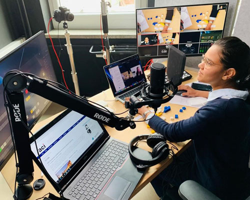 Aktuell wird die gesamte technische Ausstattung aufgebaut, die optimale Funktionsfähigkeit getestet und erste Tutorials produziert sowie hybride Settings installiert. Zur Verfügung stehen unter anderem Kameras, die Aufnahmen von Front- und On-Top-Perspektiven ermöglichen. Zusätzlich können Inhalte auf Tablet oder Bildschirm gezeigt werden. Die Umschaltung erfolgt dann über eine einfache Steuerung am Video-Mischpult. Ebenso möglich ist das Aufzeichnen von Screencasts und Lernvideos sowie Streamingszenarien und Videokonferenzen in hoher Ton- und Bildqualität. Dabei kann der Hintergrund über einen Greenscreen den individuellen Bedürfnissen angepasst werden. Für die optimale Beleuchtung kann eine App angesteuert werden, die Aufhelllicht, Spitzlicht sowie individuelle Hintergrundausleuchtung erlaubt. Für einen mobilen Einsatz wurden Transportkisten angeschafft, die das Einpacken und Versenden der Technik an alle Thüringer Hochschulen erleichtern werden. Erste Probetermine stehen bereits fest!