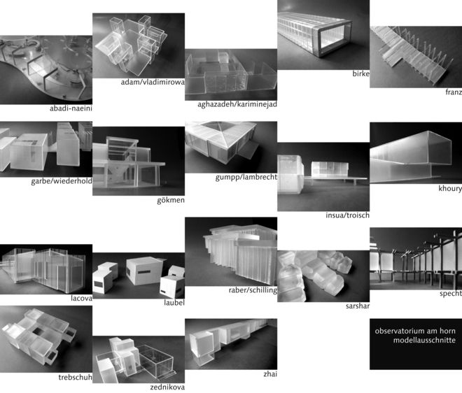 In unmittelbarer Nachbarschaft zum Musterhaus Am Horn von 1923 soll bis zum Jahr 2019 ein Forschungslabor als wachsendes Haus entstehen. Das Observatorium steht protagonistisch für experimentelle Expeditionsarchitekturen im globalen Natur- und Kulturraum und korrespondiert im Sinne eines Basislagers mit weiteren Satelliten im „Orbit“ (u.a. dem Dialogpartner EiABC, Addis Abeba).