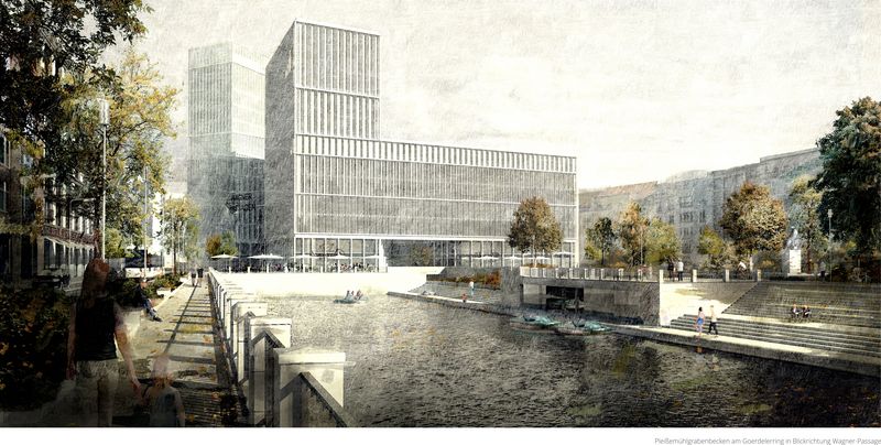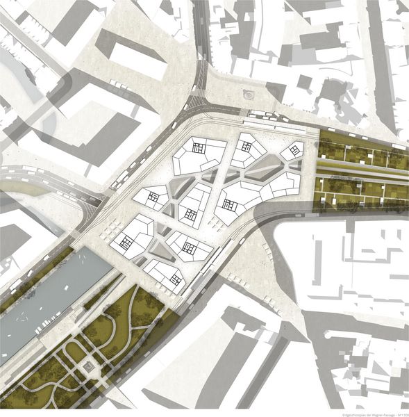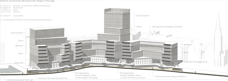 Die neue punktuelle Verdichtung verbindet mit ihren Passagen den Innenstadtbereich mit den äußeren Bezirken.