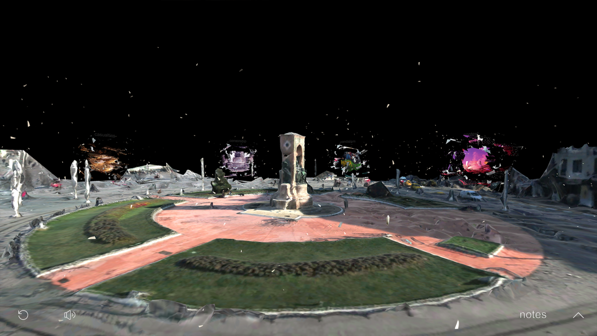 Virtual environments can be memory spaces, and be used to preserve the disappearing memories of the physical world. Ignorance in the mainstream media towards the protests caused digital platforms to be used widely for communication. As a result, an immense amount of digital records of the protest are produced collectively by the society. After almost a decade these documentations are disappearing from the digital environments. The project started with the aim of preserving the disappearing digital records of the protest. Remaining images, videos and sounds related to the protest are used as a base to form a virtual memory space by using a game engine. 3d scanning, and 3d sound design and conducted interviews are used to design an immersive narrative experience. The narration focuses on memory, and remembering in the context of Taksim and Gezi Protests. VR storytelling experience invites people to make contributions to the narration with their stories and thoughts and start a conversation on the city, and its citizens through the markers of the collective memory.