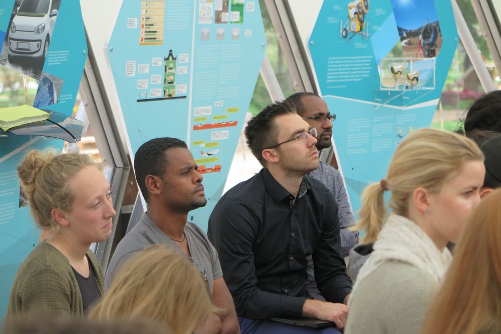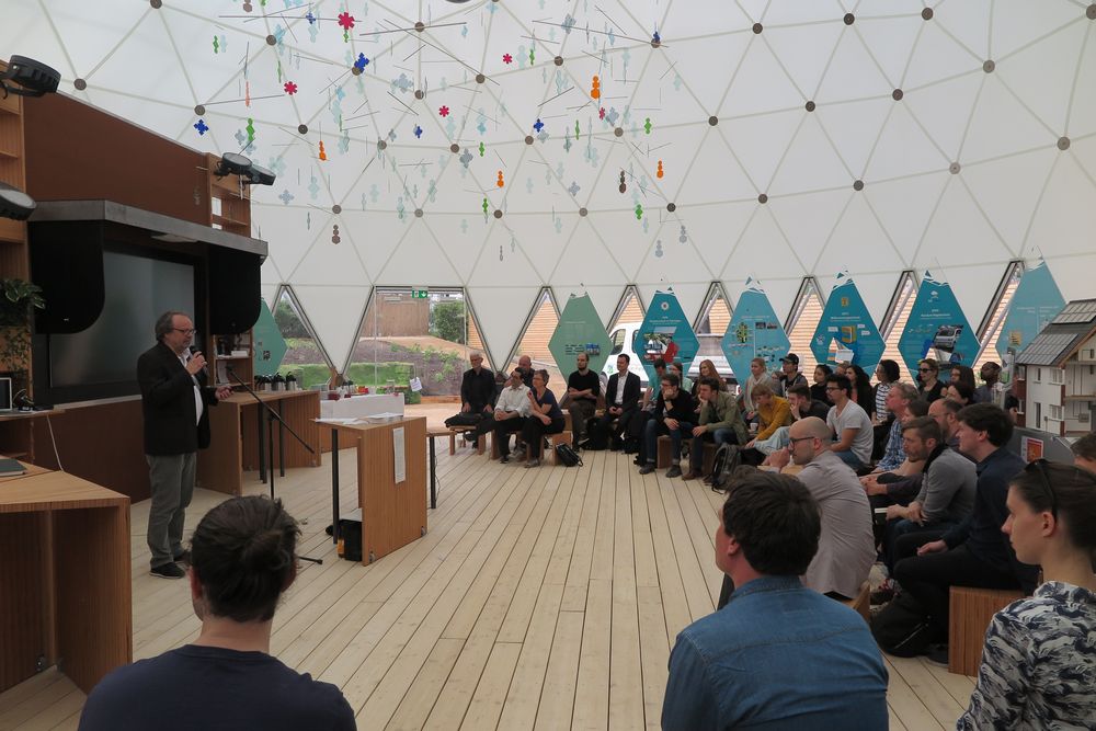 Zum Thema der Interaktion sprachen Prof. Geelhaar, Vertr.-Prof. Dr. Schneider und Dr. Zierold. Dr. Geelhaar ging auf die Entwicklung des Computers und die mit ihm verknüpften Informations- und Kommunikationstechnologien ein, bis hin zu aktuellen Entwicklungen des Internet der Dinge. Vertr.-Prof. Dr. Schneider stellte sein aktuelles Forschungsprojekt vor, eine Evolutionsmethode zur Optimierung der Architekturplanung. Dr. Zierold gab einen Überblick über die Entwicklung von interaktiven Architekturen und Installationen und von prototypischen Realisierungen im Maßstab 1:1 der MediaArchitecture Studierenden.