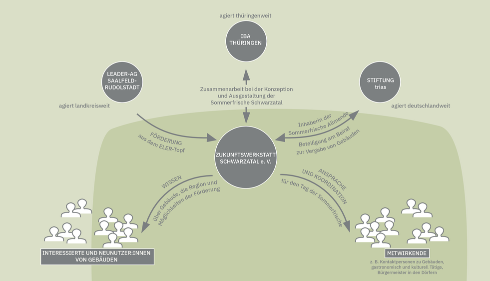 Als Frühform des Tourismus war die Sommerfrische ab Mitte des 19. Jahrhundert eng mit der flächendeckenden Verstädterung in Mitteleuropa und der Herausbildung eines urbanen Bürgertums verknüpft. Nachdem sich der Begriff in der zweiten Hälfte des 20. Jahrhunderts im Sprachgebrauch verlor, erfährt er gegenwärtig - auch im Zuge einer neuen positiven Konnotation des Ländlichen - eine Art Renaissance. Im Schwarzatal als einer historischen Zielregion dieser Reisepraxis arbeitet der lokale Verein Zukunftswerkstatt Schwarzatal gemeinsam mit der IBA Thüringen an einer zeitgenössischen Form der Sommerfrische, die auch Antworten auf den tiefgreifenden Strukturwandel nach 1989 geben soll.