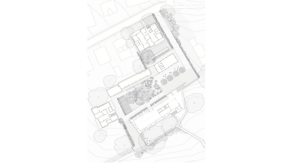 Das Areal des ehemaligen Zehntspeichers in Zwingenberg dient uns als Versuchsfeld, um dortige Wohn- und Arbeitsformen zu hinterfragen. Einst wurden hier Getreide und Wein gelagert und verarbeitet, später öffnete sich das Haus als Jugendherberge der Stadt. Neue Handlungsspielräume knüpfen an diese kollektiv-produktive Nutzungsgeschichte an und verleihen der Situierung zwischen Stadt und Weinberg neue Bedeutung. Das Bestandshaus wird um drei Volumen ergänzt und über einen Hof und einen Garten miteinander verknüpft. Anhand wechselnder Verhältnisse zwischen produktiven und nicht-produktiven Tätigkeiten werden verschiedene Formen des Zusammenlebens definiert.