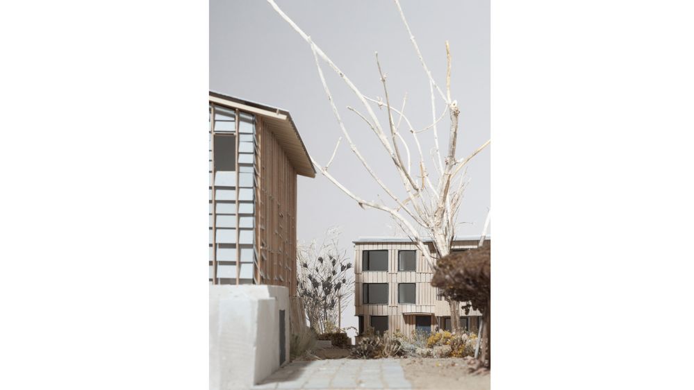 Im Kontrast dazu trennen Wohnhäuser und Arbeitshaus gezielt beide Sphären: Die Waschküche etwa bündelt Hausarbeiten und entzieht sie dem Wohnraum; das Gartenzimmer widmet sich der Pause. Beide verbinden zwei, zueinander verschobene Wohneinheiten – produktive und nicht-produktive Tätigkeiten werden zu Protagonisten des nachbarschaftlichen Zusammenlebens.