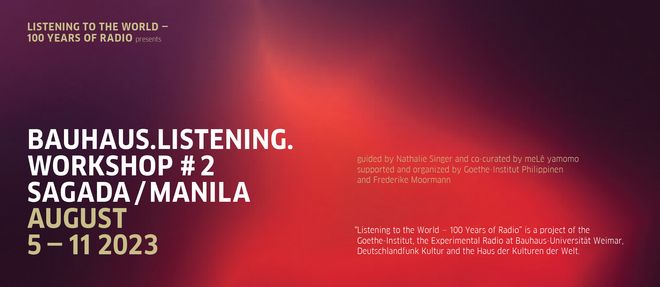 Various professional 'ears' from Vietnam, Myanmar, Indonesia, Malaysia, Sri Lanka and the Philippines were invited to the Bauhaus.Listening.Workshop #2 Sagada/Manila. For example, Sol Trinidad and Dayang Yraola address the complexity of listening from an ethnomusicological perspective in their Listening Walk. Devana Senanayake discusses with participants how queer Southeast Asian voices can be listened to. Rani Jambak takes a look at Indonesia's radio history in her lecture "Radio in the Independency 1945" and Anjeline de Dios practically explores listening through her sound massages.