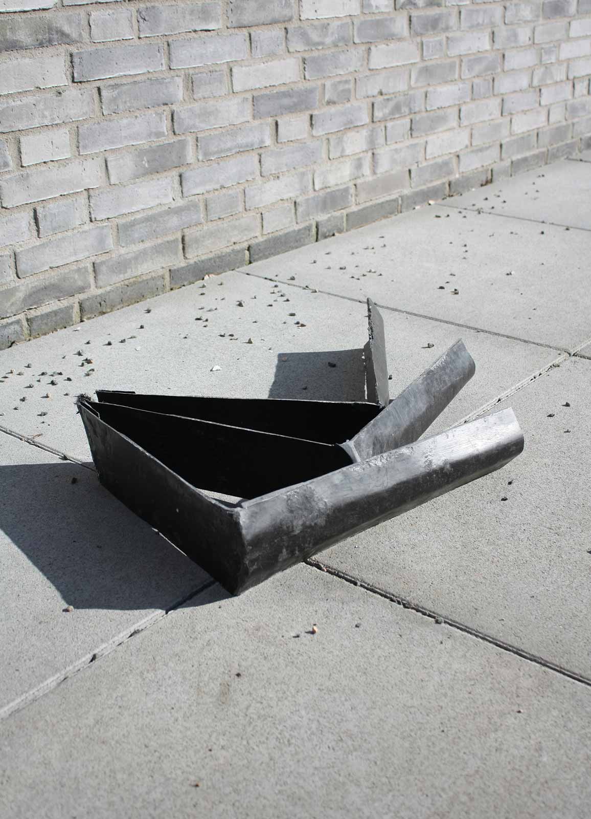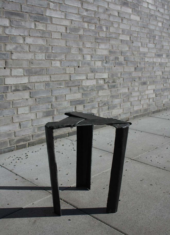 Drei lose ineinander gesteckte Elemente bilden die Grundform unseres Campinghockers. Erst durch Krafteinwirkung von oben – sprich das Gewicht einer Person – werden sie zur stabilen Einheit.