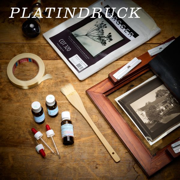 In 1873, British inventor William Willis developed a photographic printing process based on the 40-year-old discovery that potassium tetrachloroplatinate is light-sensitive. First, we will sensitise a paper carrier with a chemical solution and then dry it. In a contact printing frame modelled on historical examples, we regularly check the intensity of the exposure before developing the paper in room light.