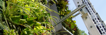 The Vertical Climate Clarification System, or VertiKKA for short, is a wall-mounted green façade combined with photovoltaics that can treat greywater. Long-term measurements on building physics and wastewater analysis are carried out on it.