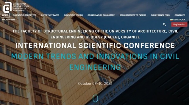 The Chair of Construction Management and Construction Methods participated in the International Scientific Conference: “Modern Trends and Innovations in Civil Engineering” at the University of Architecture, Civil Engineering and Geodesy (UACEG) in Sofia, Bulgaria, on 9–10 October 2025.