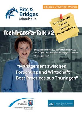 Sabine Wosche, Managing Director of the Thuringian State Development Corporation (LEG Thuringia), will speak on "Management between Research and Industry" on