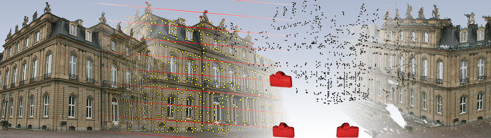 We develop sensor platforms and innovative computer algorithms to derive spatial information of objects from digital images. For example, this allows us to determine the camera motion in dynamic video sequences and to reconstruct the surface of objects from stereoscopic images. For object recognition and real-world modeling, we also apply methods of model-based image analysis.