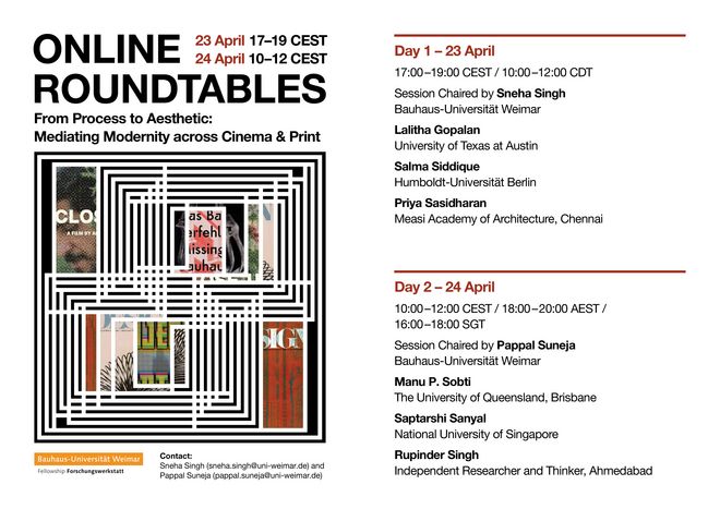 As part of the Forschungswerkstatt 2025/26 project From Process to Aesthetic at Bauhaus-Universität Weimar, we invite scholars, students, researchers, and interested members of the public to attend an online roundtable discussion focusing on modernism, media, and material culture in South Asia.
