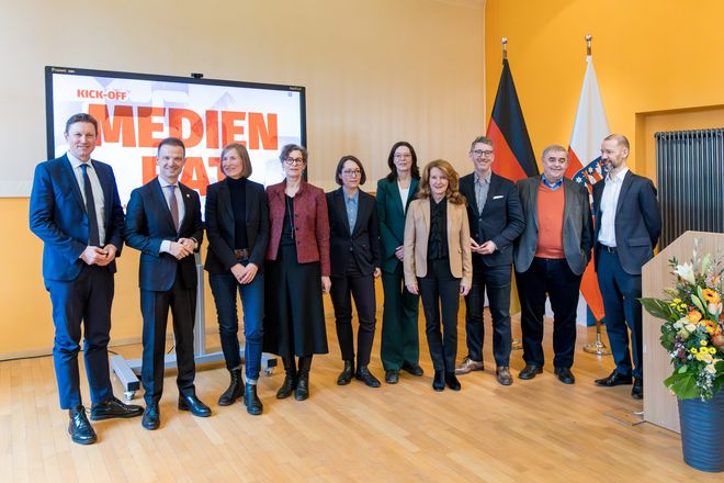 On 11 February 2026, the newly establishes Media Council met for the first time. The six-member expert committee and the Media Council members were introduced at the Bauhaus-Universität Weimar’s Medienvilla by State Secretary Heike Raab, Representative of the State of Rhineland-Palatinate to the Federal Government and for Europe and Media, Rundfunkkommission Coordinator, and the Head of the Thüringer Staatskanzlei and Minister of Media Stefan Gruhner. The required cooperation agreement between the Free State of Thuringia and the Bauhaus-Universität Weimar was also signed at the event.