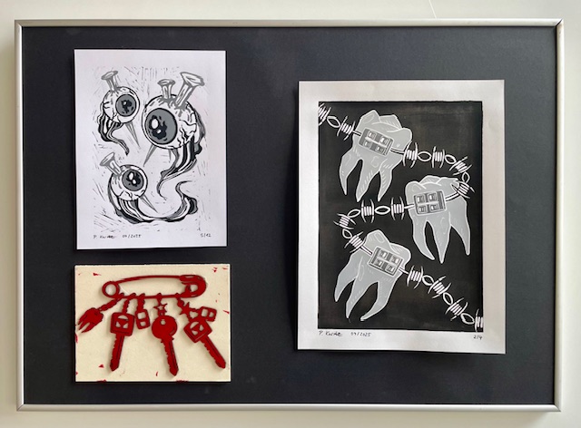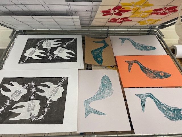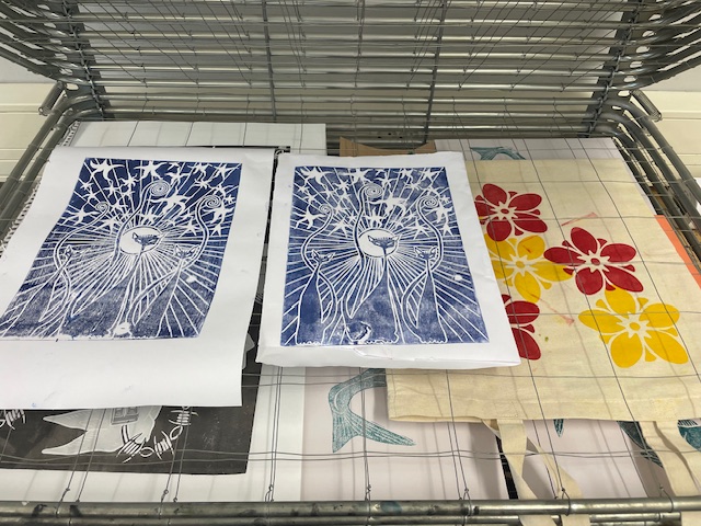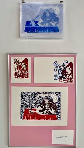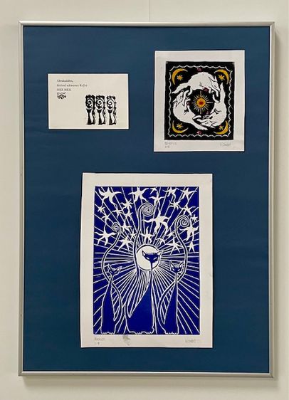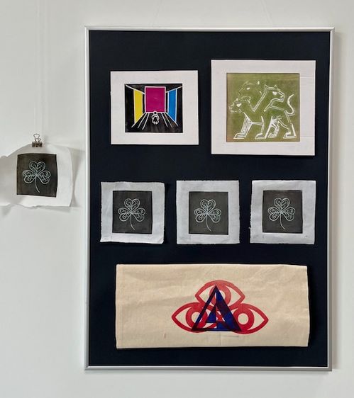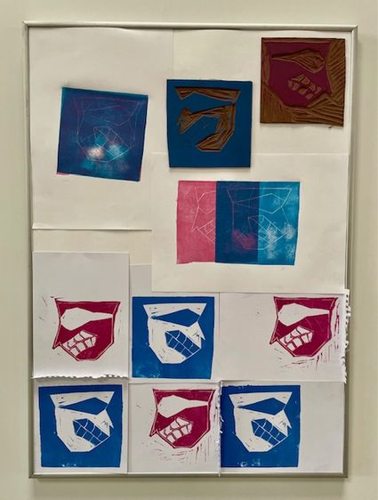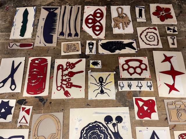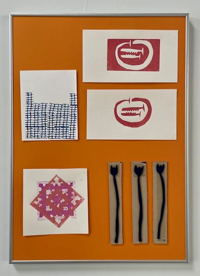 During the semester, relief prints were created from various materials and using different methods. During a workshop at the Museum of Printing Art in Leipzig, small texts were typeset using lead type. In Weimar, alongside stamp animations and textile prints made with laser-cut printing blocks, numerous multicolored prints were produced using various techniques.