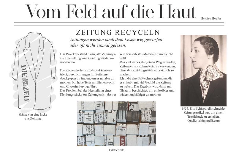 Für eine zukunftsfähige Bekleidungsindurstrie sollten Lösungen gesucht, Alternativen getestet und Experimente gewagt werden - völlig frei, ob z.B. Kleidertausch, Wasserfilterung oder Faserproduktion.Ein ergebnisoffenes und prozessorientiertes Arbeiten stand im Vordergrund.