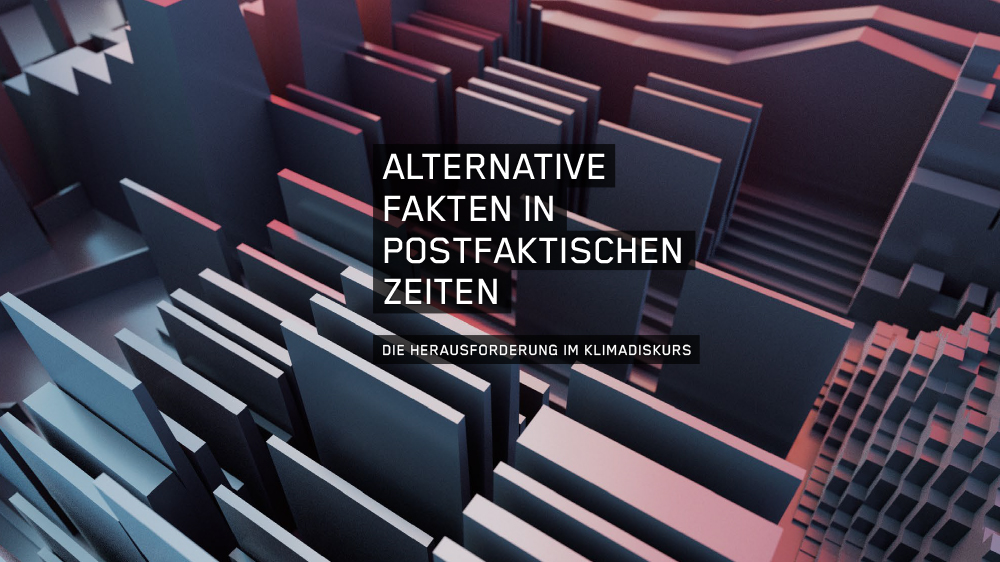 Hinter „Alternative Fakten in postfaktischen Zeiten“ verbergen sich dreidimensionale und interaktiv erkundbare Kollagen, dessen Formen aus Daten und Fakten der komplexen Klimadebatte entstanden. Die Vielschichtigkeit dieser Elemente soll den Betrachter einen neuen Blick auf den Diskurs ermöglichen. Es soll verdeutlicht werden, wie wichtig es ist, im Chaos zwischen wahrhaftigen und alternativen Argumentationen einen besonnenen Überblick zu behalten und nicht populistischen Argumentationen blind zu folgen.