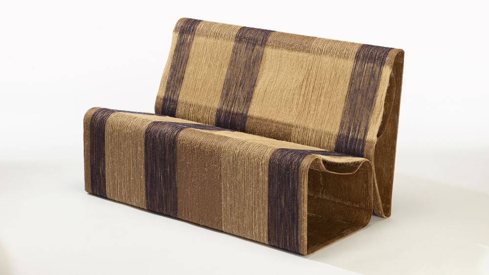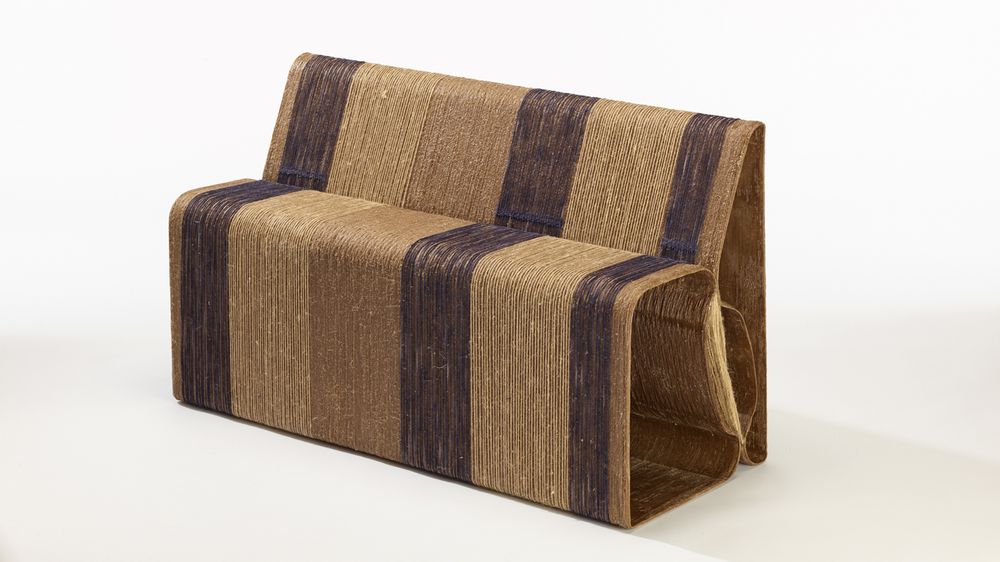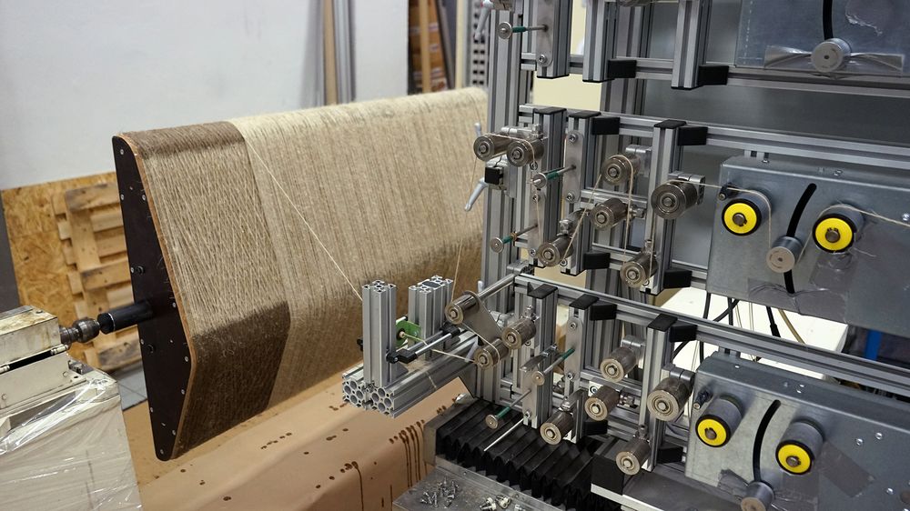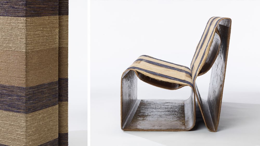 Die entstandene Studie visualisiert eine Auswahl der möglichen Innovationen, die durch den Eingriff in das Verfahren entwickelt werden konnten. Der Prototyp besteht aus zwei unterschiedlichen Modulen, die mit einem Textilscharnier verbunden sind und so in verschiedenen Konfigurationen genutzt werden können. Die Bauteile wurden in Kooperation mit dem TITK Rudolstadt auf einer CNC-gesteuerten Wickelmaschine aus Hanfgarn hergestellt und mit einem Matrixmaterial ausgehärtet. Das so entstandene Objekt schreibt kein festes Nutzungsszenario vor, vielmehr kann man damit experimentieren und mit dem eigenen Körper die Leistungsfähigkeit des neu geschaffenen Material- und Konstruktionssystems erfahren. Auch die unterschiedlichen Oberflächen und Materialzustände können durch diese Benutzung erkundet werden: Je nach Position sitz man auf weichen oder harten Flächen, eben oder schräg, mit oder ohne Lehne.