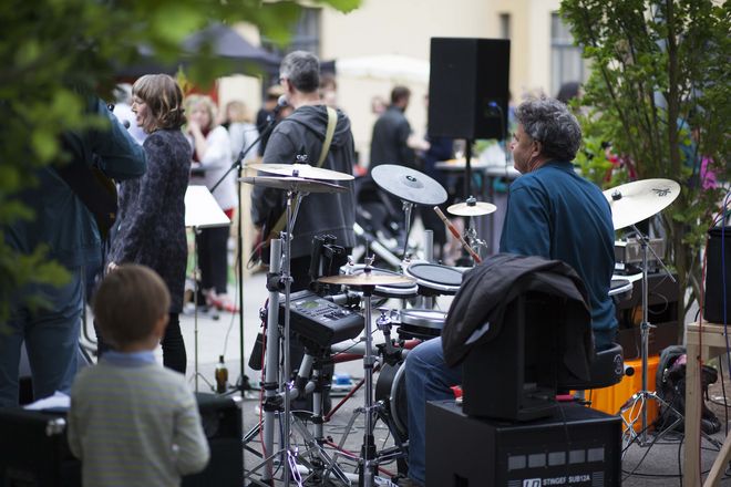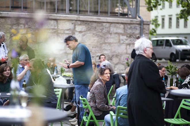 Zum diesjährigen »welt.weit.weimar«-Treffen wurden individuelle Führungen, Entdeckungstouren und Alumni-Spaziergänge angeboten und zum traditionellen Sektempfang im Bauhaus.Atelier hieß Präsident Prof. Dr. Winfried Speitkamp die zahlreich erschienenen Ehemaligen herzlich willkommen. Anschließend gab es Sekt bei bester Musik mit der Professorenband »Liz and the Boys« mit Prof. Liz Bachhuber, Prof. Jay Rutherford, Prof. Hermann Stamm und Welf Oertel, die nicht nur aus aktuellen sondern auch ehemaligen Professoren und Professorinnen der Universität Weimar besteht. So wie die Mitglieder der Band aus verschiedenen Ländern kommen, spiegeln sie das Programm »welt.weit.weimar« wieder.