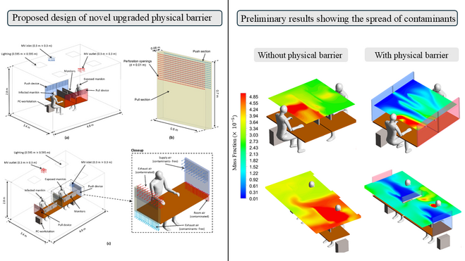 What makes my project special is the development of a novel infection-control device which is an enhanced version of the typical physical barrier used in indoor environments. Unlike traditional partitions that offer limited protection and fail to adapt to occupant movements or respiratory activities, my design integrates active components such as localized exhaust fans to significantly improve the capture and redirection of airborne contaminants.