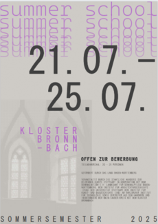 Summer School zum Thema Denkmalpflege vom 21.-25. Juli 2025 im Kloster Bronnbach, unter dem Titel „Eine Zukunft für den Saalgarten“. Diese wird ausgerichtet von der Staatlichen Akademie der Bildenden Künste Stuttgart.