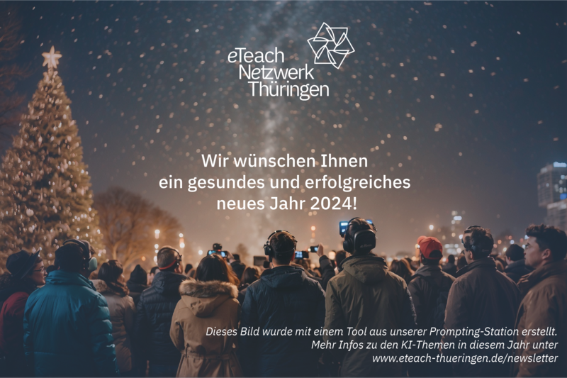 ein herzliches Willkommen im neuen eTeach-Jahr! Wir hoffen, dass Sie 2024 mit frischer Energie und Begeisterung begrüßen konnten. Im ersten Newsletter des neuen Jahres möchten wir bei dem Thema bleiben, das uns auch zum Jahresausklang bewegt und beschäftigt hat: Die Entwicklungen im Bereich der Künstlichen Intelligenz haben an den Thüringer Hochschulen und im eTeach-Netzwerk Thüringen zu einem beeindruckenden Austausch, zu ersten Ergebnissen, spannenden Projekten und Qualifizierungsangeboten geführt, die wir Ihnen gern vorstellen möchten. Außerdem gibt es neue Mitarbeitende im Netzwerk und wir stellen Ihnen unsere Arbeitsroutinen vor. Wir wünschen Ihnen einen guten Start und viel Spaß beim Lesen!